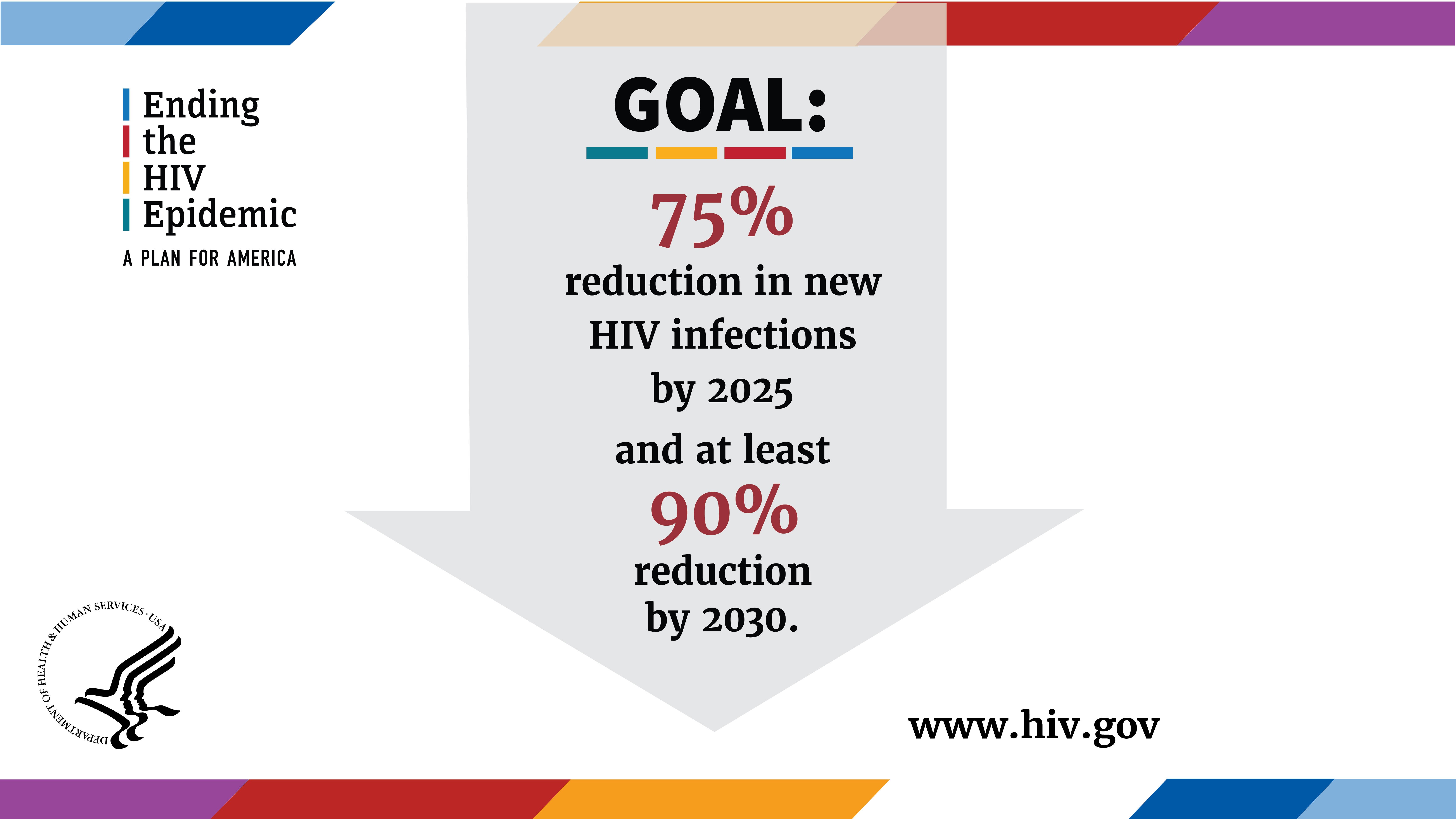In February 2019, the federal government introduced a new initiative "Ending the HIV Epidemic: A Plan for America". This is a ten-year initiative beginning in FY 2020 focused on reducing new HIV infections by 2030. The initiative will involve several government agencies, including Health and Human Services (HHS), Centers for Disease Control and Prevention (CDC), National Institutes of Health (NIH), Health Resources and Services Administration (HRSA) among others. Through this federal initiative, funding will primarily be distributed to 48 counties with the highest burden of new HIV diagnoses to “End the Epidemic” in their jurisdiction. HHS released a guide to this initiative’s plan, Ending the HIV Epidemic: A Plan for America. Their guide outlines the four key strategies the plan will utilize to reach its goals: Diagnose, Treat, Protect, and Respond.